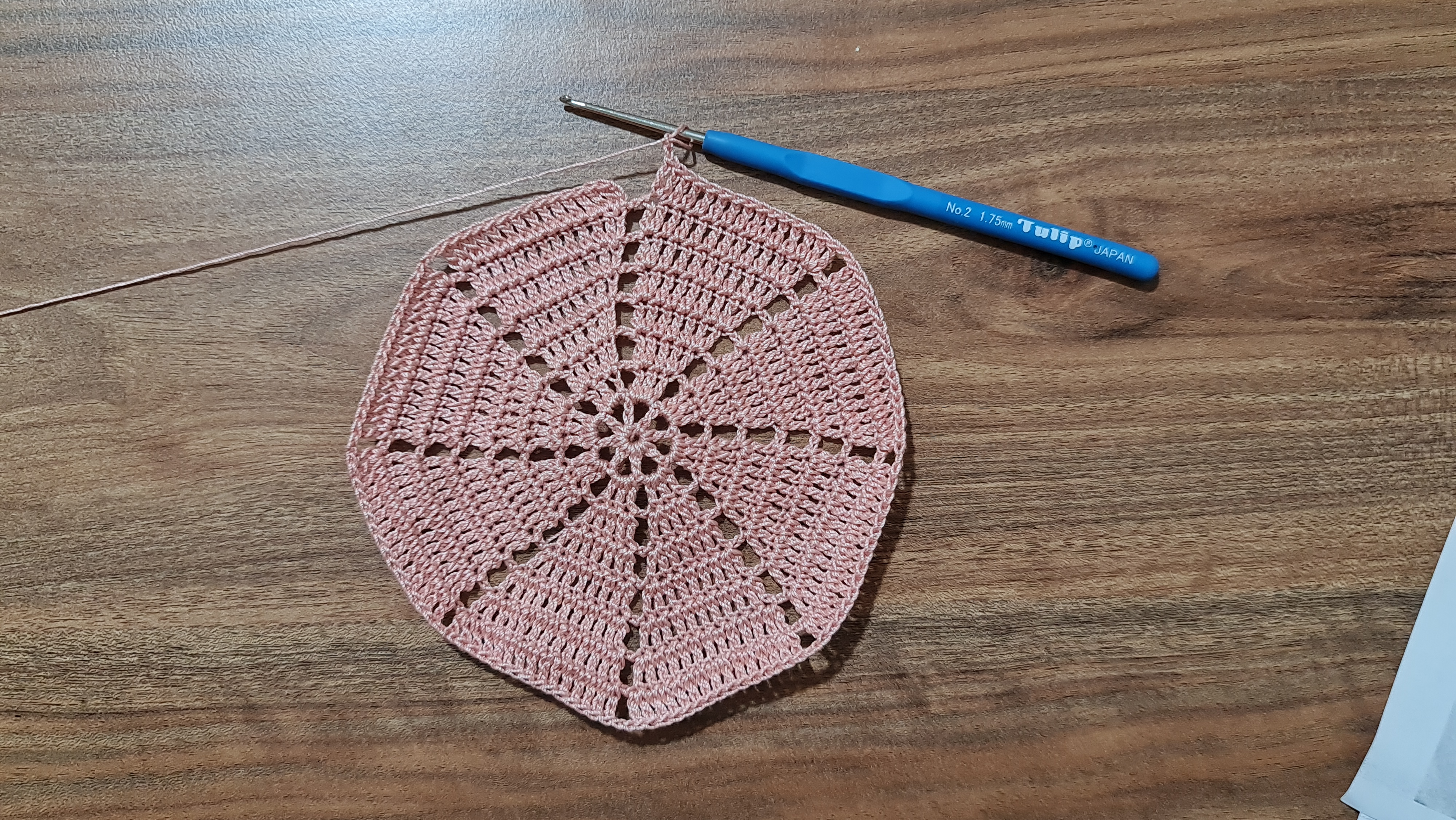 Yeni bir model, yeni istek model. Gül desenli sehpa örtüsü, henüz gül aşamalarına geçilmedi. Burası orta kısmı, ortayı bu şekilde ördükten sonra etrafına 8 parça file örgü gül deseni yaacağız. Orta kısmını örmek için Buraya tıklayınız .